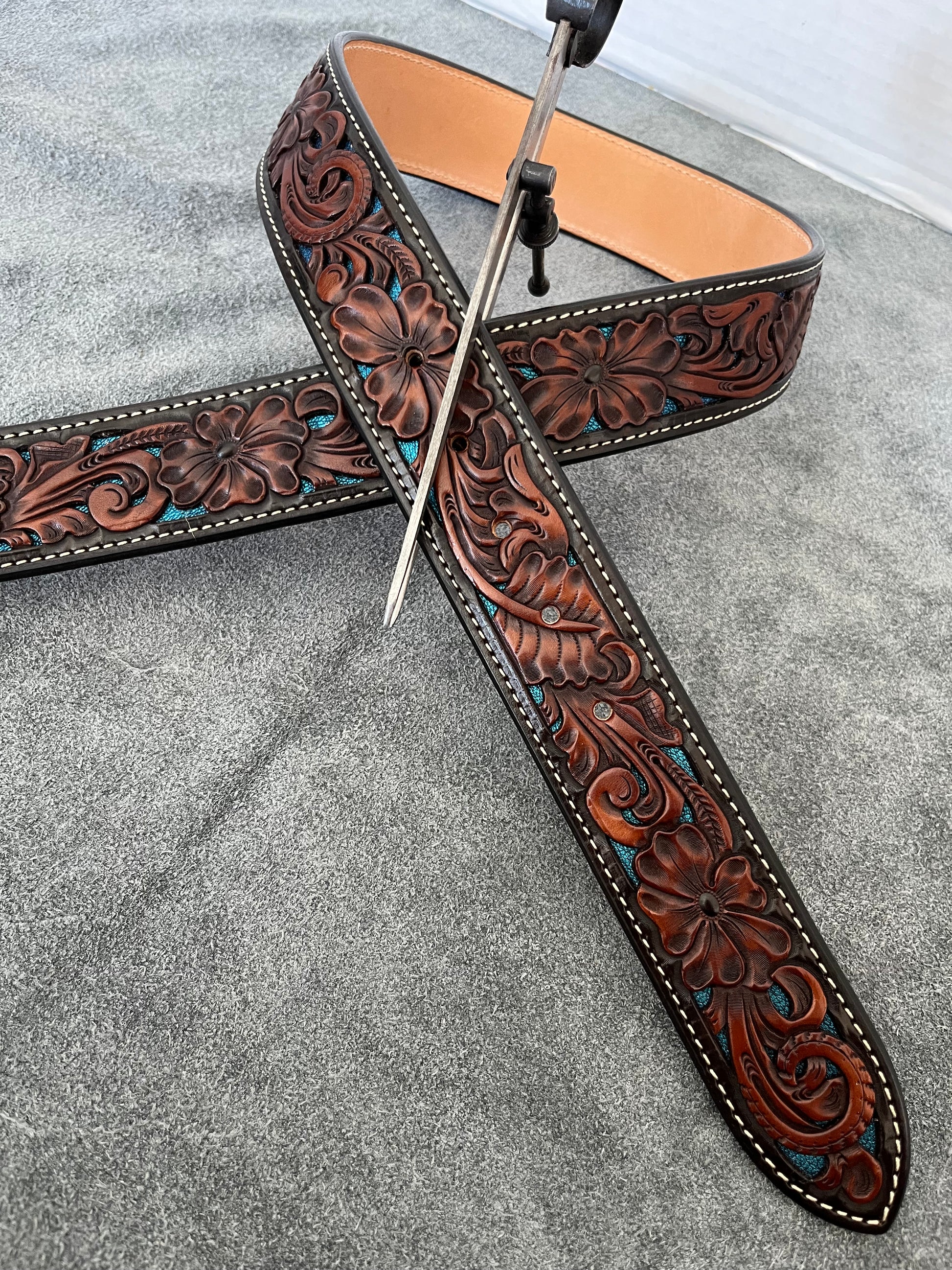 This belt is a size 32 inch from fold to middle hole and has 2 holes to each side